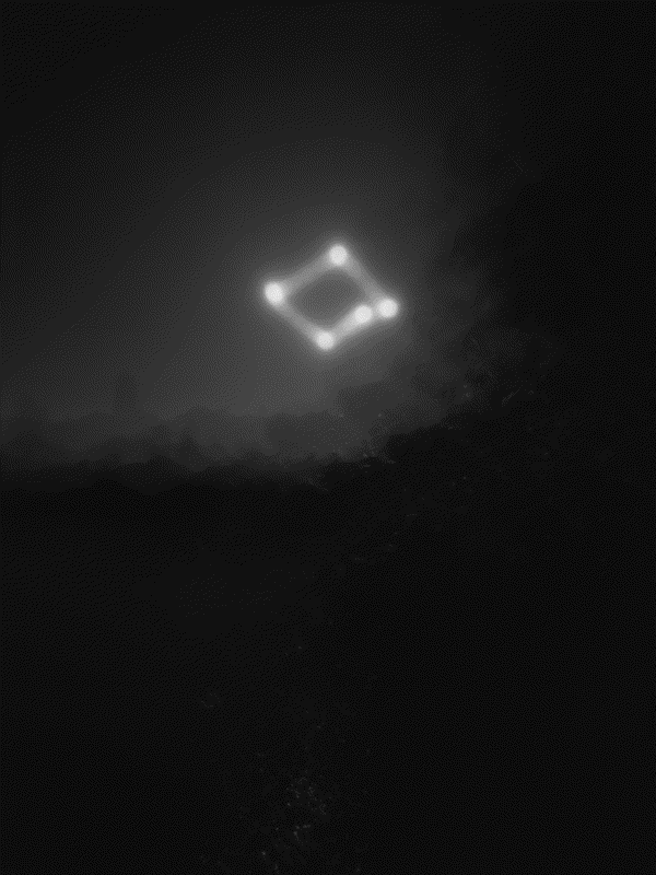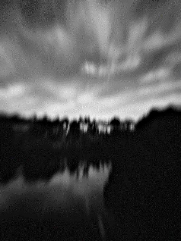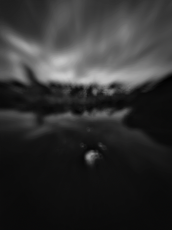 Animated loops, from long exposure frames, draw sun scrawls over a dark and enigmatic landscapes.