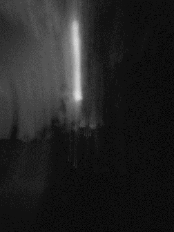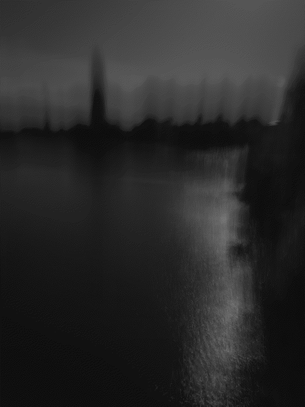 Impressionistic and abstract, dark black-and-white photography exploring an atmospheric and surreal alternate urban landscape.