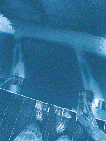 Hesitant vision of a siren calls from this narrow, cyanotype tributary to the sea.